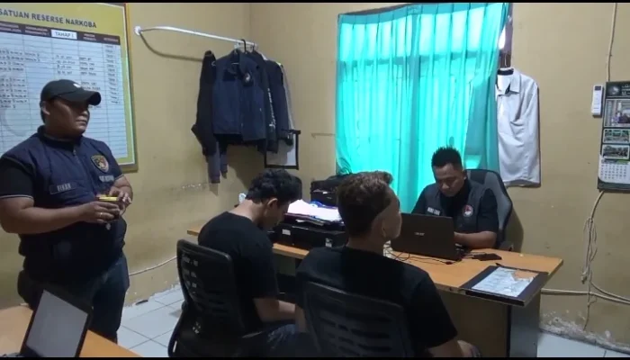 Polisi berhasil mengamankan 2 pria di depan kontrakan di Jalan Bima Sakti, Kecamatan Betung, Kabupaten Banyuasin.
