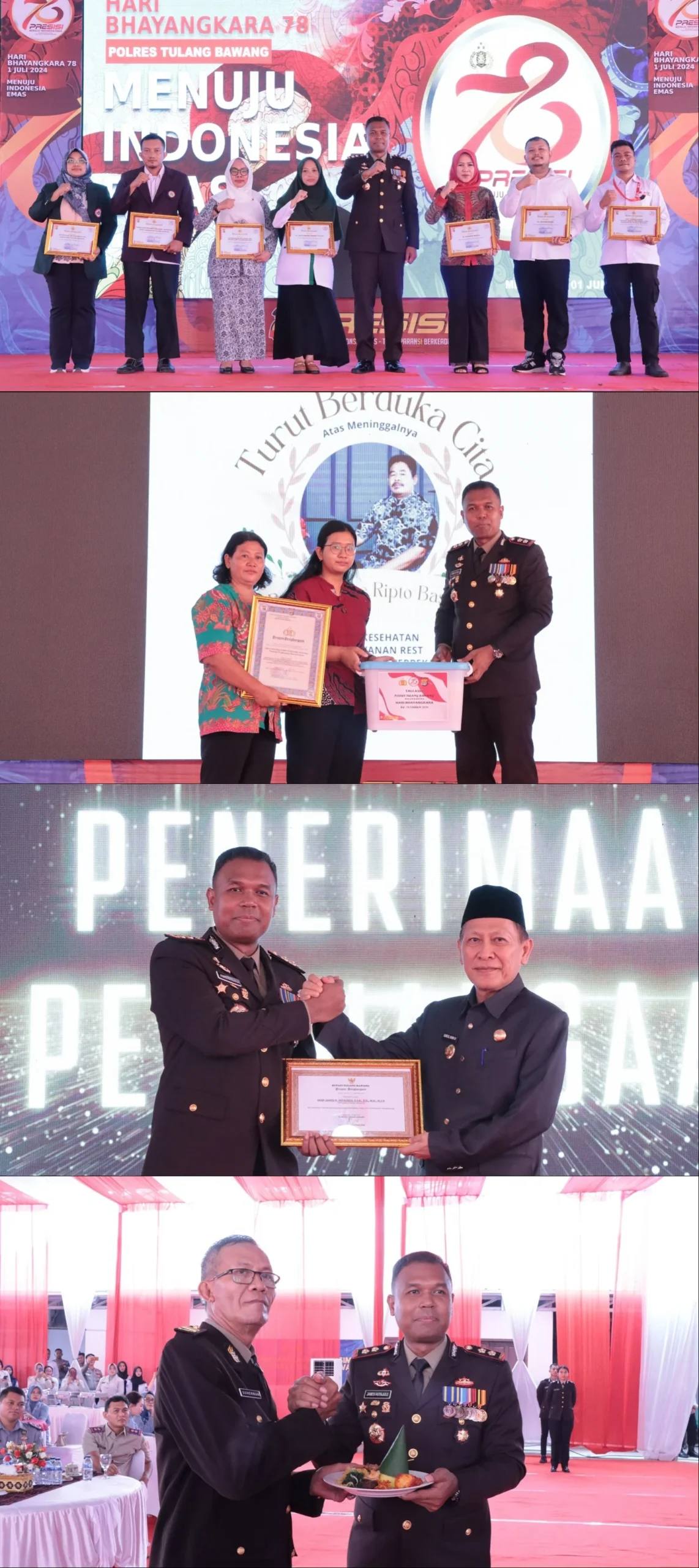 Polres Tulang Bawang juga menganugerahkan penghargaan kepada para tokoh agama dan masyarakat yang berpartisipasi aktif dalam mendukung terwujudnya kamtibmas yang kondusif. Salah satunya diberikan kepada tenaga kesehatan yang wafat saat bertugas pada Operasi Kepolisian Ketupat Krakatau tahun 2024 an. Antonius Ripto Basuki yang diterima langsung oleh istri dan anaknya.