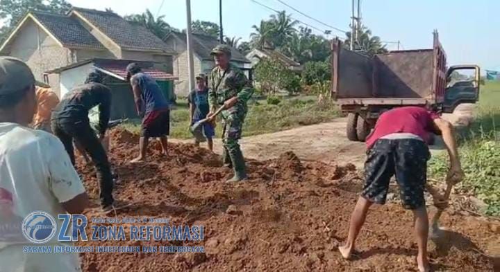 Dengan melaksanakan kegiatan Gotong Royong penimbunan jalan bersama dengan Masyarakat Desa binaan, pada kesempatan ini Babinsa bersama masyarakat melaksanakan penimbunan jalan yang sering dilalui warga.