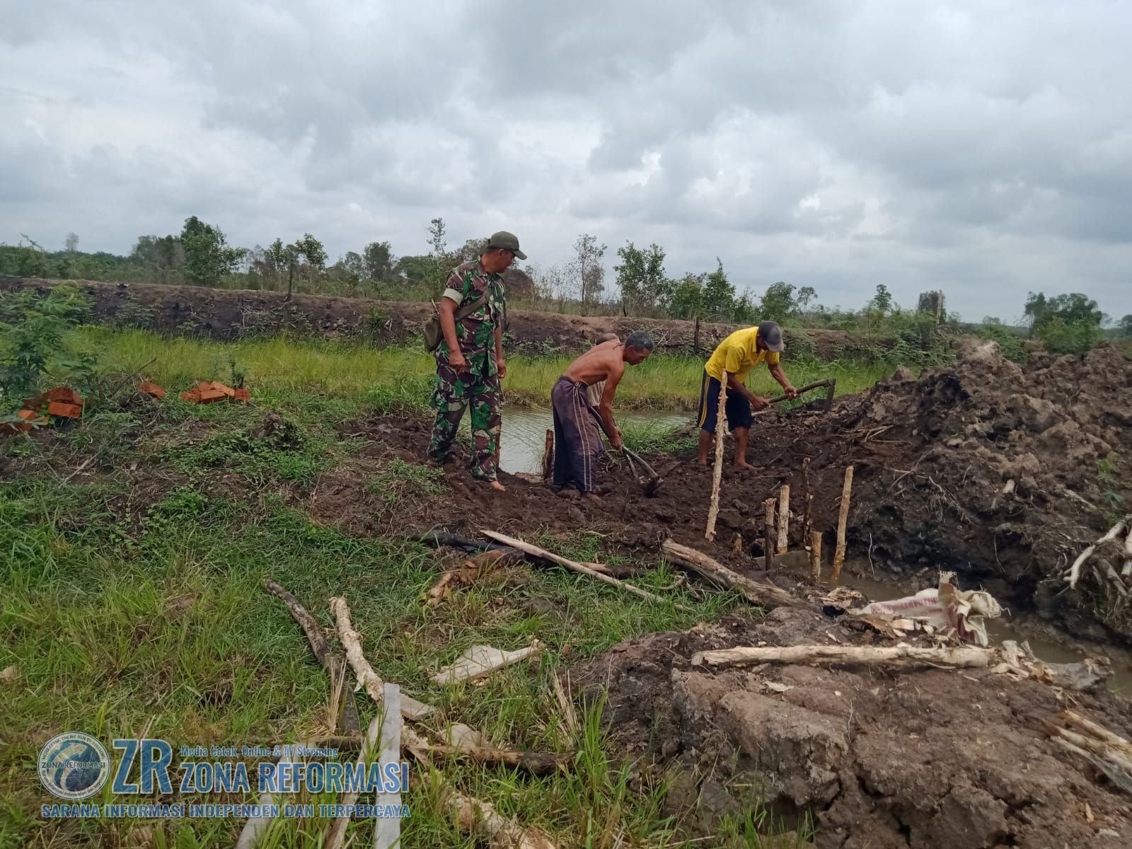 Babinsa Koramil 426-05 Penawar Aji Gotong Royong Perbaiki Saluran Air