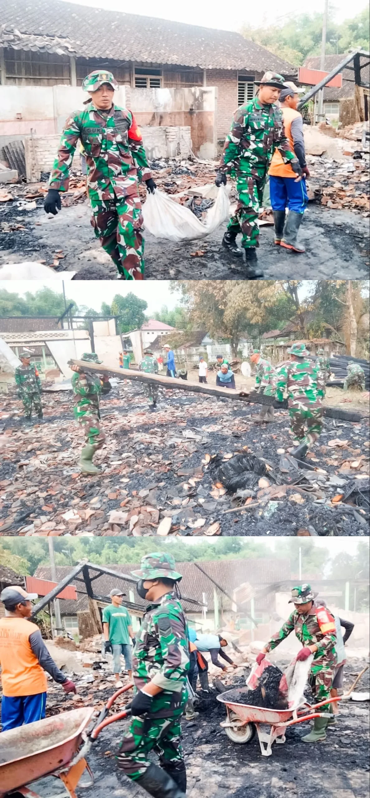 “Bersama-sama warga Dusun Krajan Kidul, para anggota Babinsa melaksanakan kerja bakti membersihkan sisa-sisa kebakaran rumah milik ibu Ainun Zuhro,” ungkapnya.