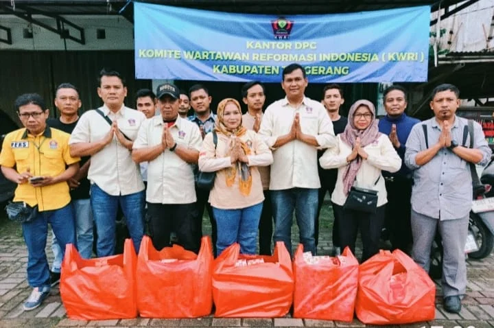 Tangerang – Di Momen Bulan Suci Rahmadan 1447 H , Dewan Pemimpinan Cabang (DPC) Komite Wartawan Reformasi Indonesia (KWRI) Kabupaten Tangerang Banten melaksanakan kegiatan bagi – bagi takjil gratis ke para penguna jalan baik roda dua maupun roda empat yang melintasi di Jalan raya Cisoka Adiyasa tepat nya di Pintu Gerbang Batara Desa Pasanggrhan Kecamatan Solear Kabupaten Tangerang Banten , Sabtu 7 / 3 / 2026.