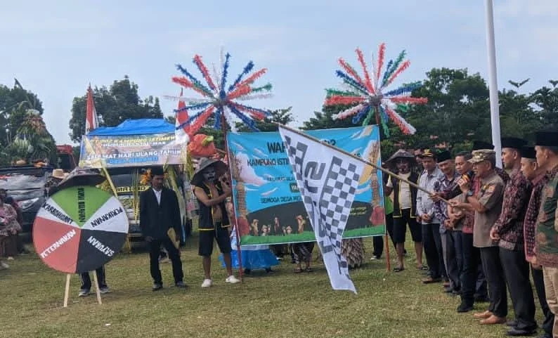 Bangko – Zonareformasi. com, Bupati Merangin H M Syukur melalui Wabup Merangin H A Khafihd, melepas Pawai Ketahanan Pangan dalam rangka peringatan Hari Ulang Tahun (HUT) ke-45 Desa Meranti Kecamatan Renah Pamenang, Minggu (05/10).