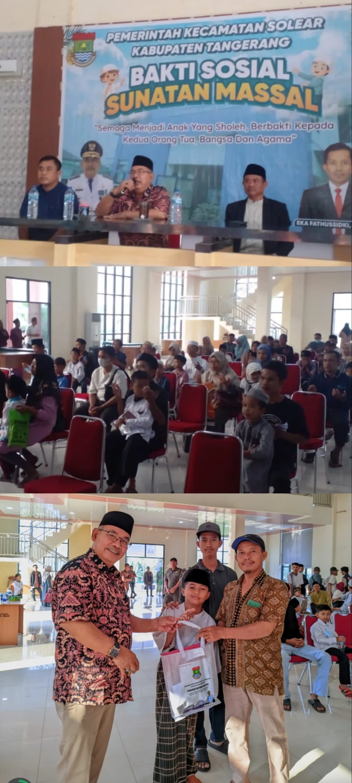 Kabupaten Tangerang-Pemerintah kecamatan solear, kabupaten Tangerang laksanakan kegiatan bakti sosial sunatan massal dalam rangka menyambut hari raya anak yatim 10 Muharram 1446 Hijriyah, Acara digelar di gedung serbaguna guna (GSG) kecamatan solear Sabtu 27 Juli 2024