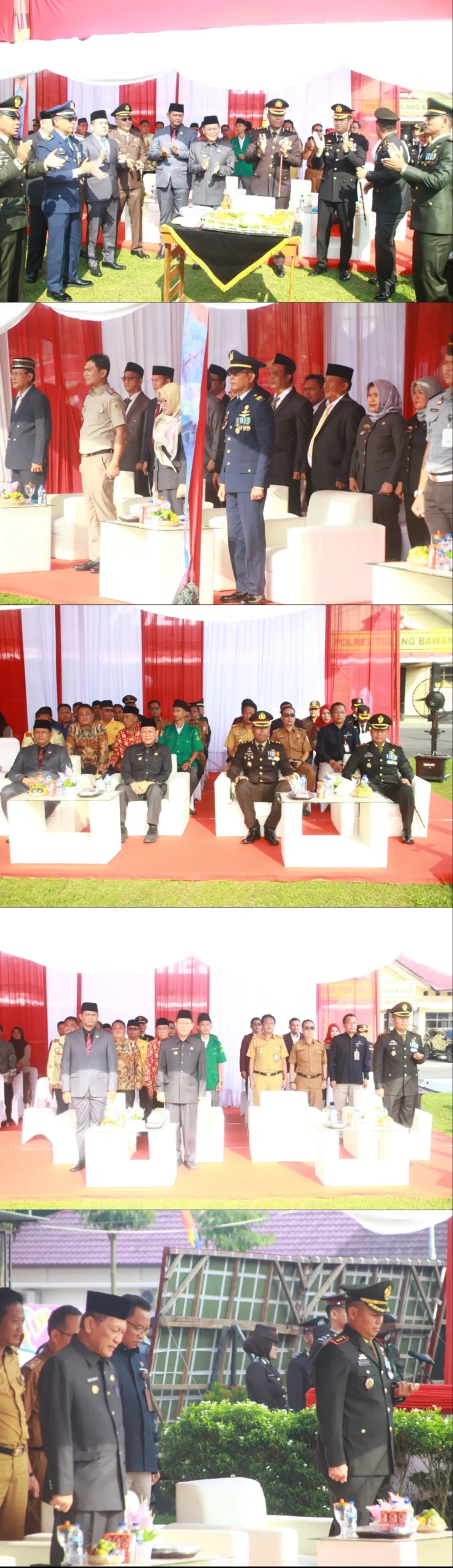 ZR Tulang bawang Menggala Timur — Komandan Kodim 0426 Tulang Bawang, Letkol Kav Delvy Marico, S.E., M.I.P. Bersama Pj. Bupati Tuba dan Forkopimda menghadiri peringatan Hari Bhayangkara, Ke-78 bertempat di lapangan Mapolres Tulang Bawang, Jl Lintas Timur Sumatera KM 113 Kelurahan Lebuh dalam, Kecamatan Menggala Timur, Kabupaten Tulang Bawang, Senin 01 Juli 2024.
