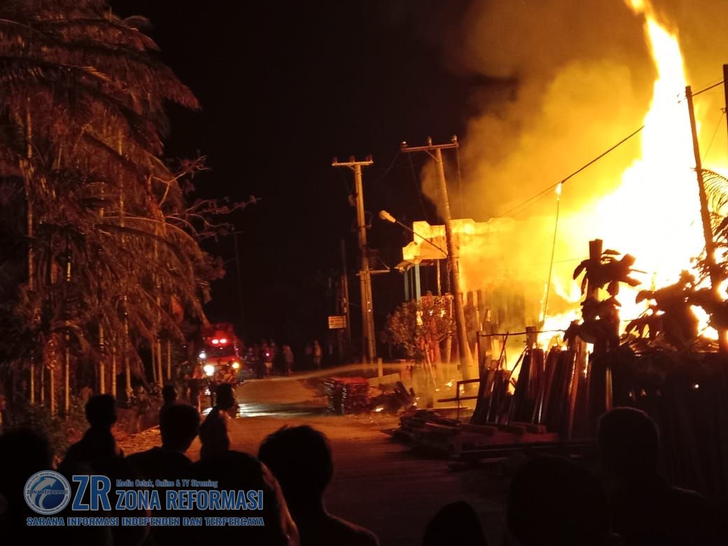 BATURAJA – OKU || ZONA REFORMASI – Warga jalan Air semambu, Kemelak Bidung Langit (Belakang Dealer Mitsubishi) Rt. 05 Rw.  01 Kecamatan Baturaja Timur, Kabupaten Ogan Komering Ulu (OKU) dihebohkan oleh peristiwa kebakaran sebuah depot kayu milik Suparjono (55) yang terjadi pada Senin, 11 September 2023, sekira pukul 19.30 WIB. Dimana dalam peristiwa ini sebuah depot kayu beserta isinya habis dilalap oleh sijago merah.