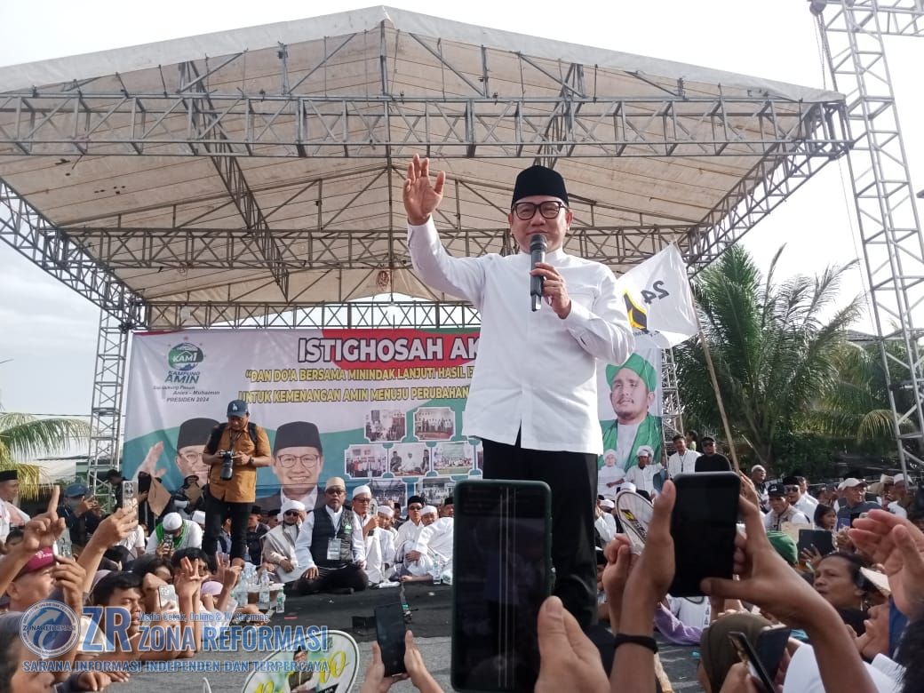 Sementara itu Cawapres Muhaimin Iskandar atau yang akrab di sapa Cak Imin dalam pidato kebangsaanya menyampaikan di hadapan para pendukungnya jika
