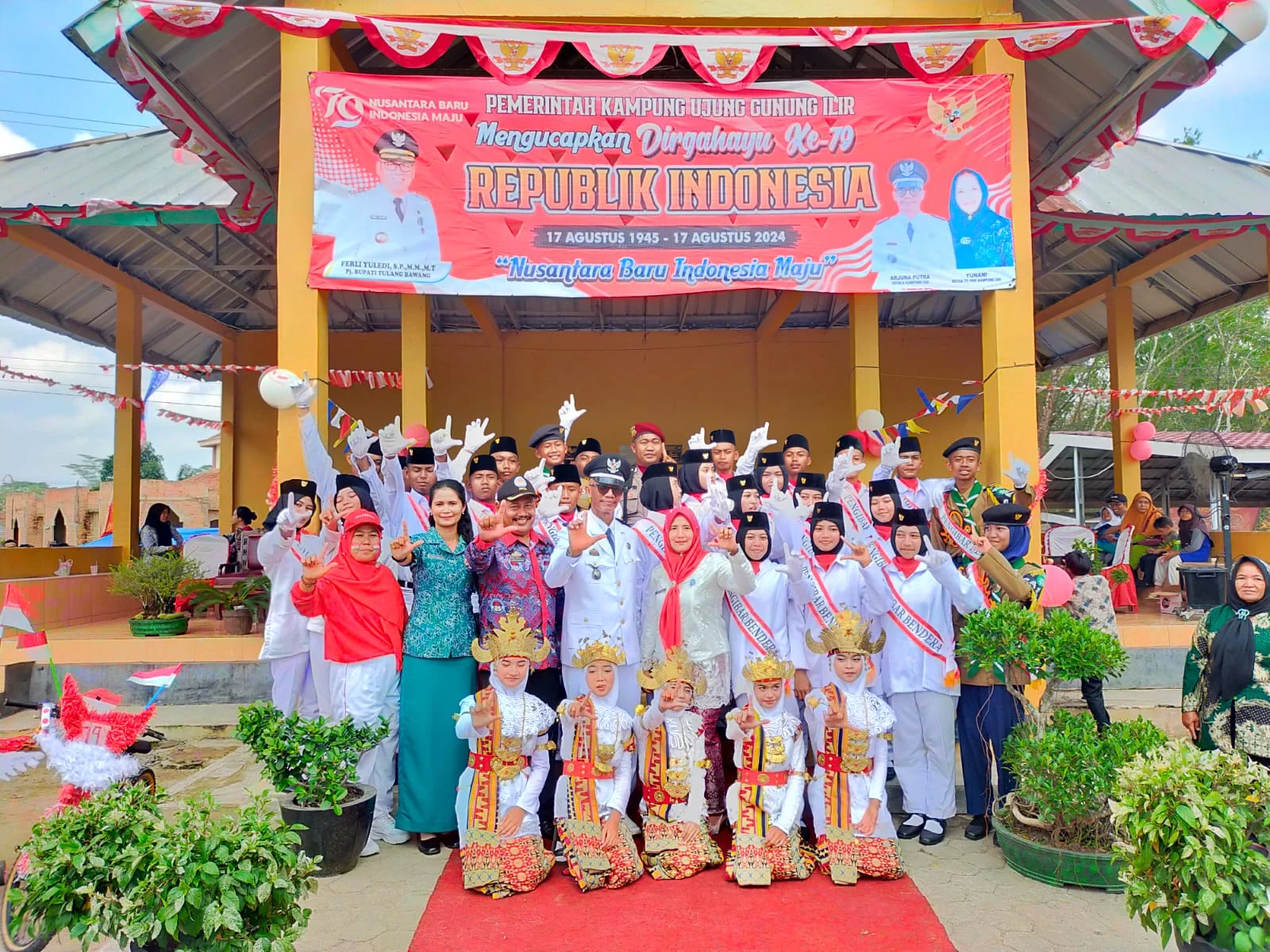 Tulang bawang- Kampung Ujung Gunung Ilir Kecamatan Menggala Kabupaten Tulang Bawang di Bawah Pimpinan Arjuna Putra Mengadakan Upacara memperingati Hari Kemerdekaan RI ke-79 momen penuh makna dan haru di Lapangan Kampung Ujung Gunung Ilir yang dihadiri oleh, tokoh adat, tokoh agama, tokoh