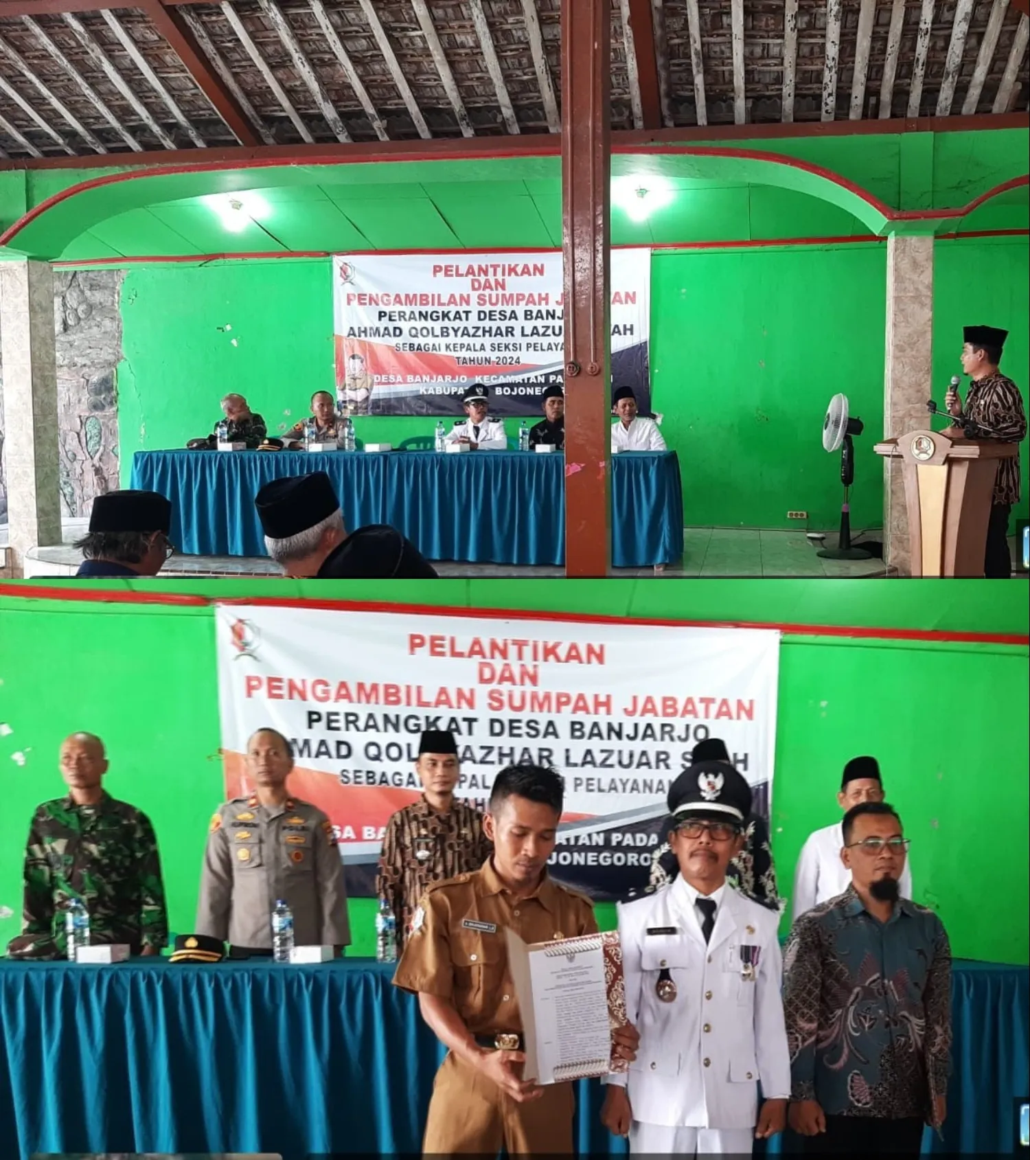 “Alhamdulillah acara pengambilan sumpah jabatan dan pelantikan perangkat desa dalam jabatan Kasi Pelayanan Desa Banjarejo berjalan lancar dan tertib,” kata Kapolsek.