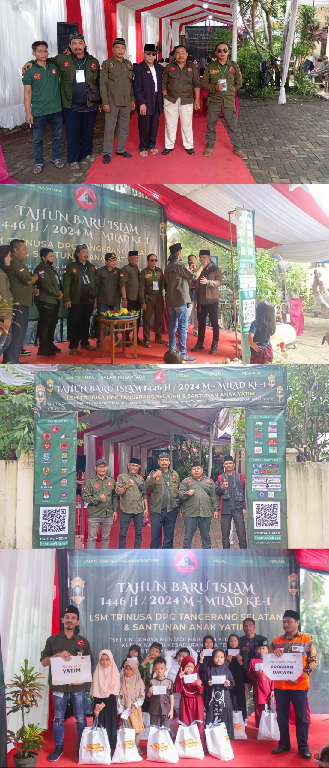 Tangerang Selatan,— Acara santunan yatim dan peringatan milad ke-1 LSM Trinusa Dewan Pimpinan Cabang (DPC) Tangerang Selatan berlangsung dengan khidmat dan lancar. Kegiatan ini dihadiri oleh berbagai kalangan, termasuk pemerintah kota Tangerang Selatan, Kesatuan Bangsa dan Politik (Kesbangpol), media partner, sponsor, hingga masyarakat setempat.7/Juli /2024