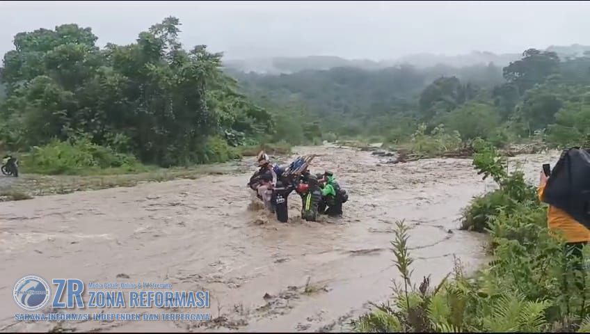 Dalam situasi yang penuh tantangan ini, mereka harus menemukan cara untuk menyeberangi arus banjir yang deras, sambil membawa sepeda motor dan perlengkapan logistik pemilu. Ini bukanlah tugas yang mudah, namun niat yang kuat untuk memastikan hak demokrasi warga masyarakat terpenuhi mendorong mereka untuk terus maju.