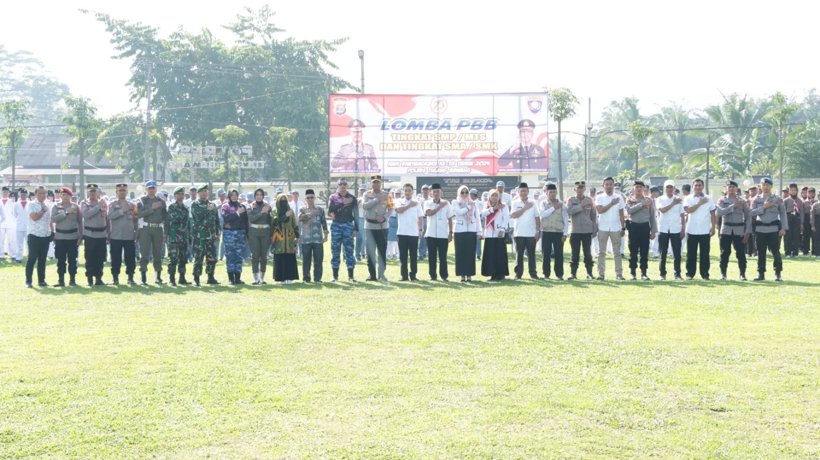 “Hari ini, kami dari Polres Tulang Bawang menggelar lomba peraturan baris berbaris (PBB) yang diikuti oleh para pelajar tingkat SMA/SMK dan SMP/MTS se-Kabupaten Tulang Bawang. Lomba PBB ini digelar untuk memeriahkan dan menyambut Hari Bhayangkara Ke-78 Tahun 2024 yang acara puncaknya diperingati pada tanggal 1 Juli 2024 nanti,” kata AKBP James mengawali amanatnya.