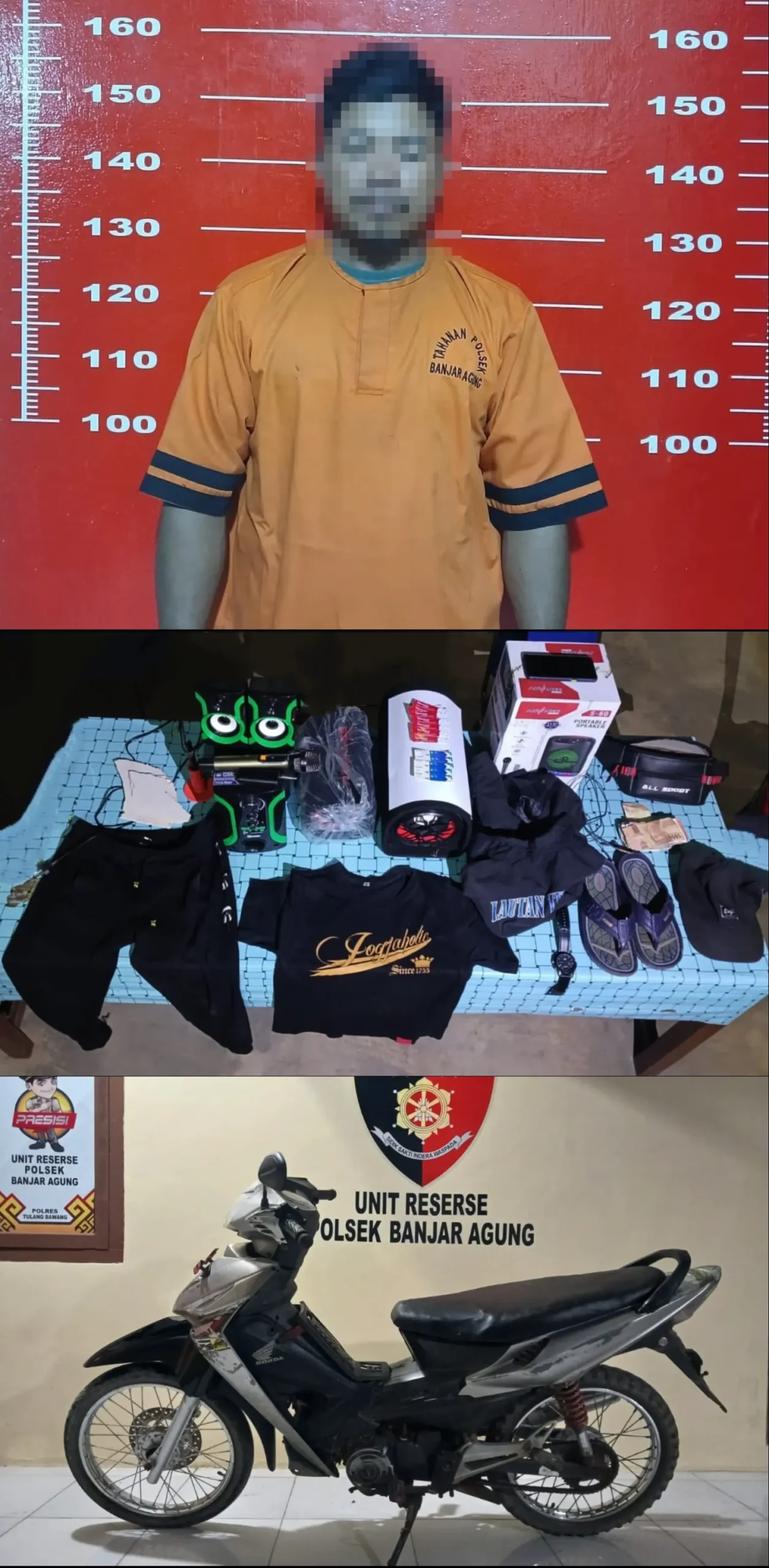 “Petugas kami yang dipimpin langsung oleh Katim Opsnal Aiptu Ahmad Firdaus, SH, setelah melakukan serangkaian penyelidikan akhirnya menangkap pelaku curat dengan TKP di salah satu konter HP. Pelaku ini ditangkap hari Jum’at (21/06/2024), sekitar pukul 21.00 WIB, saat sedang berada di rumahnya yang ada di Kampung Tri Tunggal Jaya, Kecamatan Banjar Margo,” kata Kapolsek Banjar Agung, Kompol Feizal Reza Harahap, SE, M.Si, mewakili Kapolres Tulang Bawang, AKBP James H Hutajulu, SIK, SH, MH, MIK, Minggu (23/06/2024).