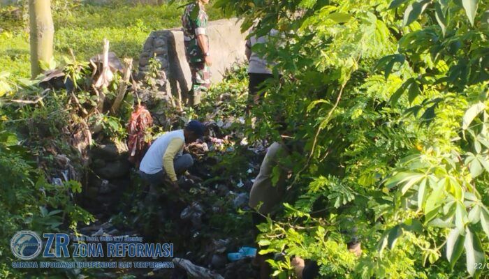 Dengan kesadaran dan semangat kebersamaan serta jiwa gotong royong, baik Babinsa maupun masyarakat, bersama sama membersihkan sampah dan membersihkan rumput yang tumbuh pada selokan.