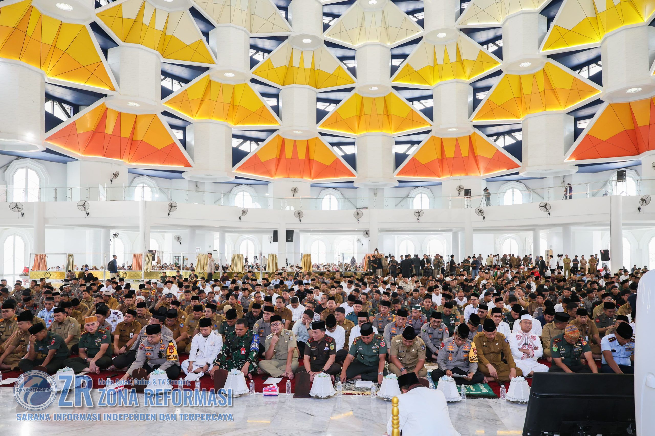 ZR Makassar-‘Ribuan masyarakat Makassar menghadiri acara Dzikir dan Doa kebangsaan dalam rangka Pemilu Damai yang dilaksanakan Polda Sulsel, bersama Pemerintah Provinsi Sulawesi Selatan, Kodam XIV/Hsn, jajaran TNI, serta jajaran Kanwil Kemenag Sulsel, Senin (12/2/2024).