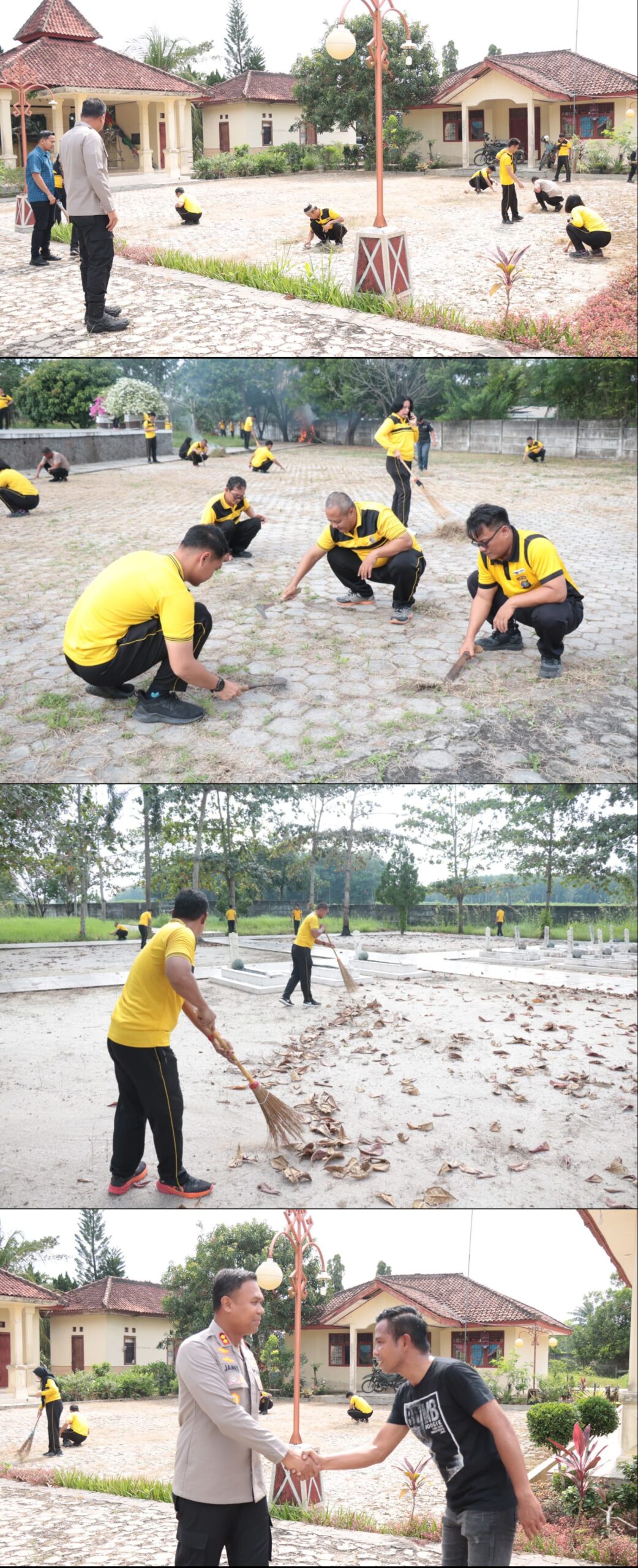 Kegiatan bersih-bersih di TMP Tiuh Tohou ini dipimpin langsung oleh Kapolres Tulang Bawang, AKBP James H Hutajulu, SIK, SH, MH, MIK, yang diikuti oleh PJU Polres, dan seluruh personel Polres Tulang Bawang.