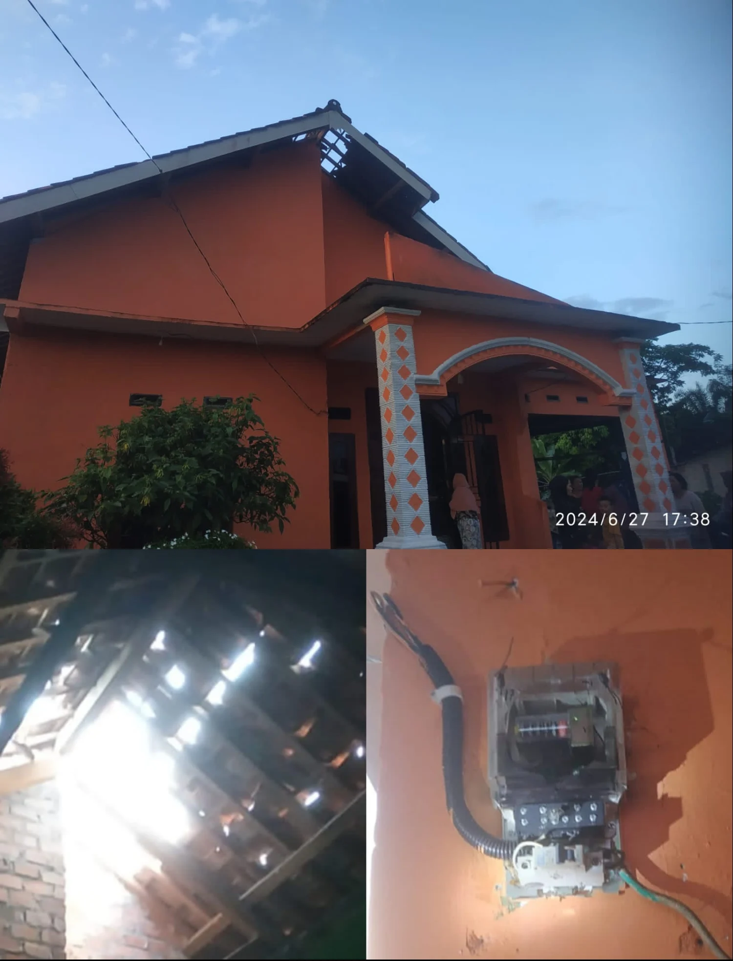 Curah hujan disertai petir yang menggelegar sekitar pukul 16:00 mengakibatkan satu rumah rusak parah dibarengi instalasi kWh listrik hancur di perkirakan jumlah kerugian sekitar jutaan rupiah.