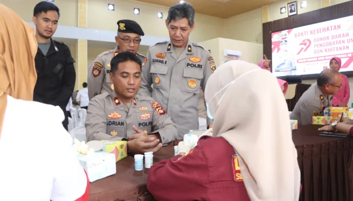 *BANYUASIN* – Menyambut Hari Bhayangkara ke-79 yang diperingati pada 1 Juli 2025, Polres Banyuasin menggelar kegiatan bakti kesehatan berupa pengobatan umum, donor darah dan khitan.