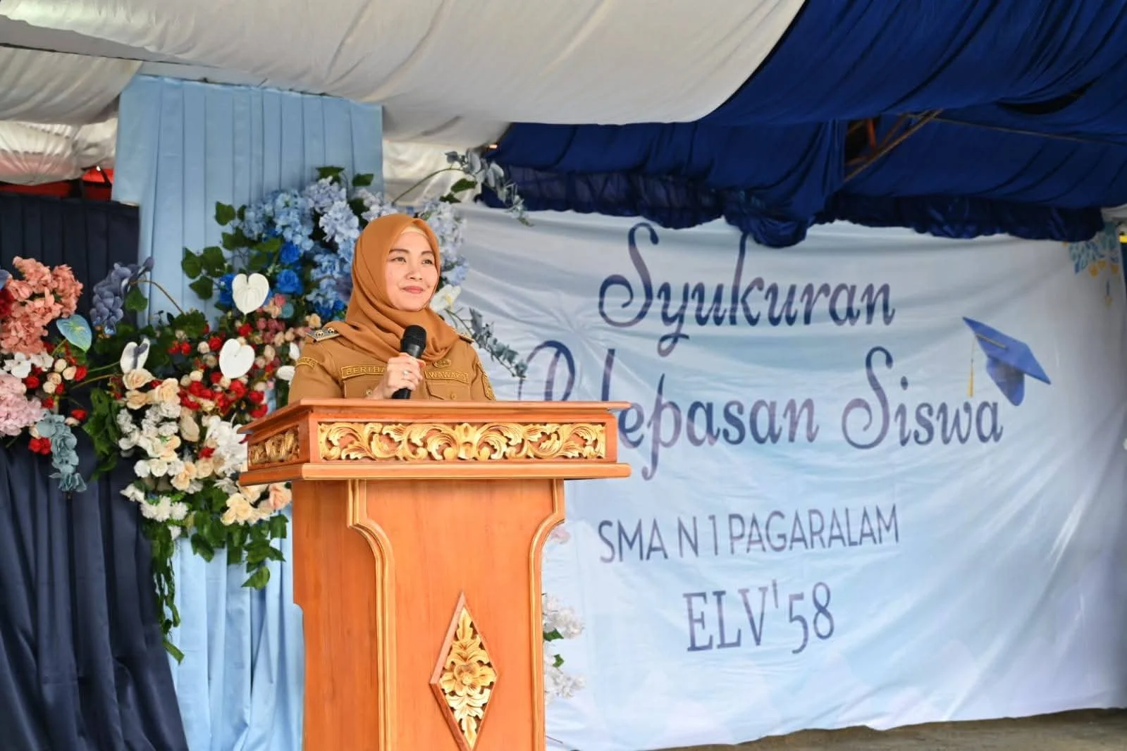 Dalam sambutannya, Wawako Hj. Bertha memberikan pujian tinggi khusus kepada SMA Negeri 1 Pagar Alam. Beliau mengakui dedikasi luar biasa para tenaga pendidik di sekolah ini yang konsisten menjaga standar kualitas pendidikan.“Keberhasilan para siswa hari ini adalah bukti nyata kerja keras dan cinta dari para guru di SMA Negeri 1 Pagar Alam. Sekolah ini bukan hanya tempat belajar, tapi kawah candradimuka yang berhasil membentuk karakter tangguh,” ujar Wawako.