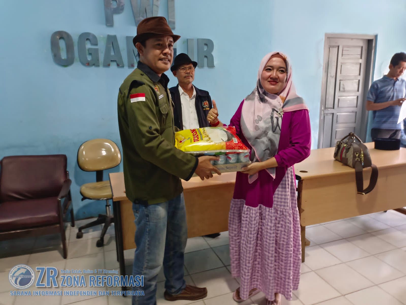 ZR OGAN ILIR – Persatuan Wartawan Indonesia (PWI) Kabupaten Ogan Ilir mengadakan kegiatan pembagian paket sembako dan minuman jelang Hari Raya Idul Fitri 1.445 H.
